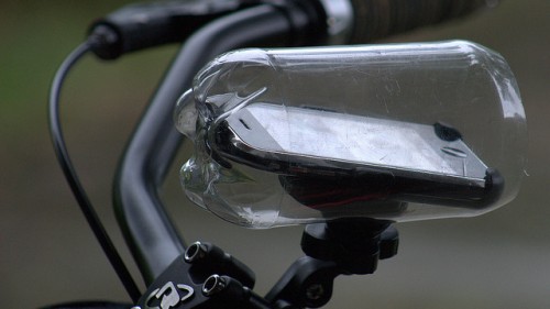 7. प्लास्टिक की बोतल को अपनी बाइक पर स्मार्टफोन के लिए एक सुरक्षात्मक “कवर” में बदलें