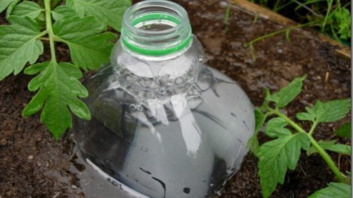 यदि आप अपने इन्फिल्ड से निकलने जा रहे हैं तो सब्जी उद्यान में सिंचाई प्रणाली और आपके अजमोद को पानी देने के लिए कोई भी नहीं है। बोतल के नीचे और दो तरफ दो छेद बनाओ।
