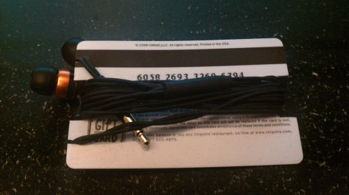 5. हेडफोन से केबल के लिए एक हांक के रूप में पुराना उपहार कार्ड।